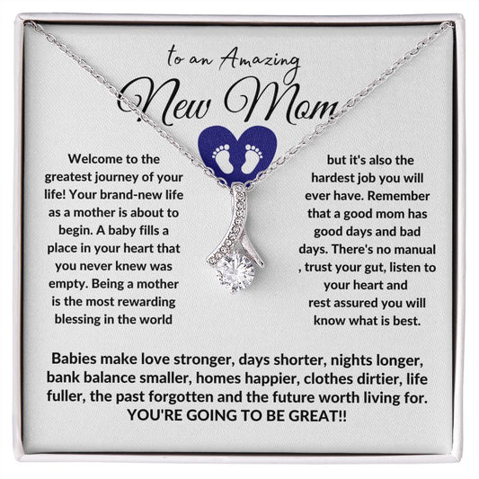 New Mom-Blue Feet-Youre going to be great-Love knot necklace