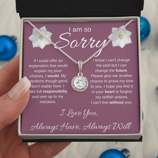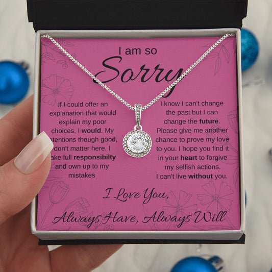 I Am So Sorry--Pink Text/Flowers--Eternal Hope Necklace