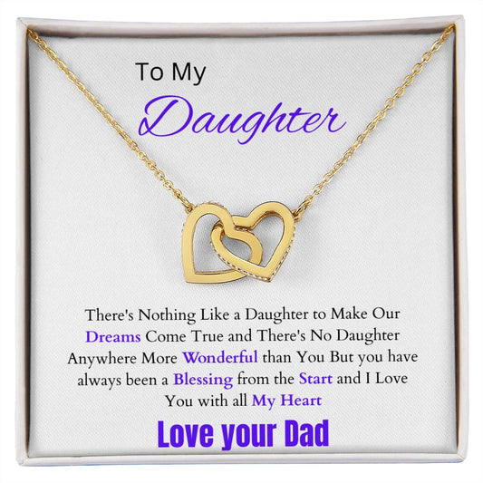 To My Daughter--Love Dad--Purple Text-- Interlocking Hearts Necklace